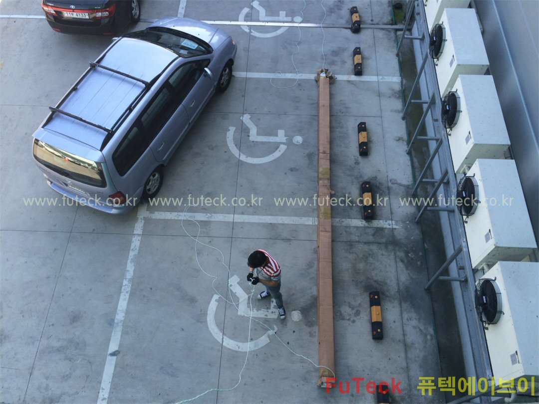 장애인 주차장 두 칸에 걸쳐 있는 장비…. 정말 기네요~~
