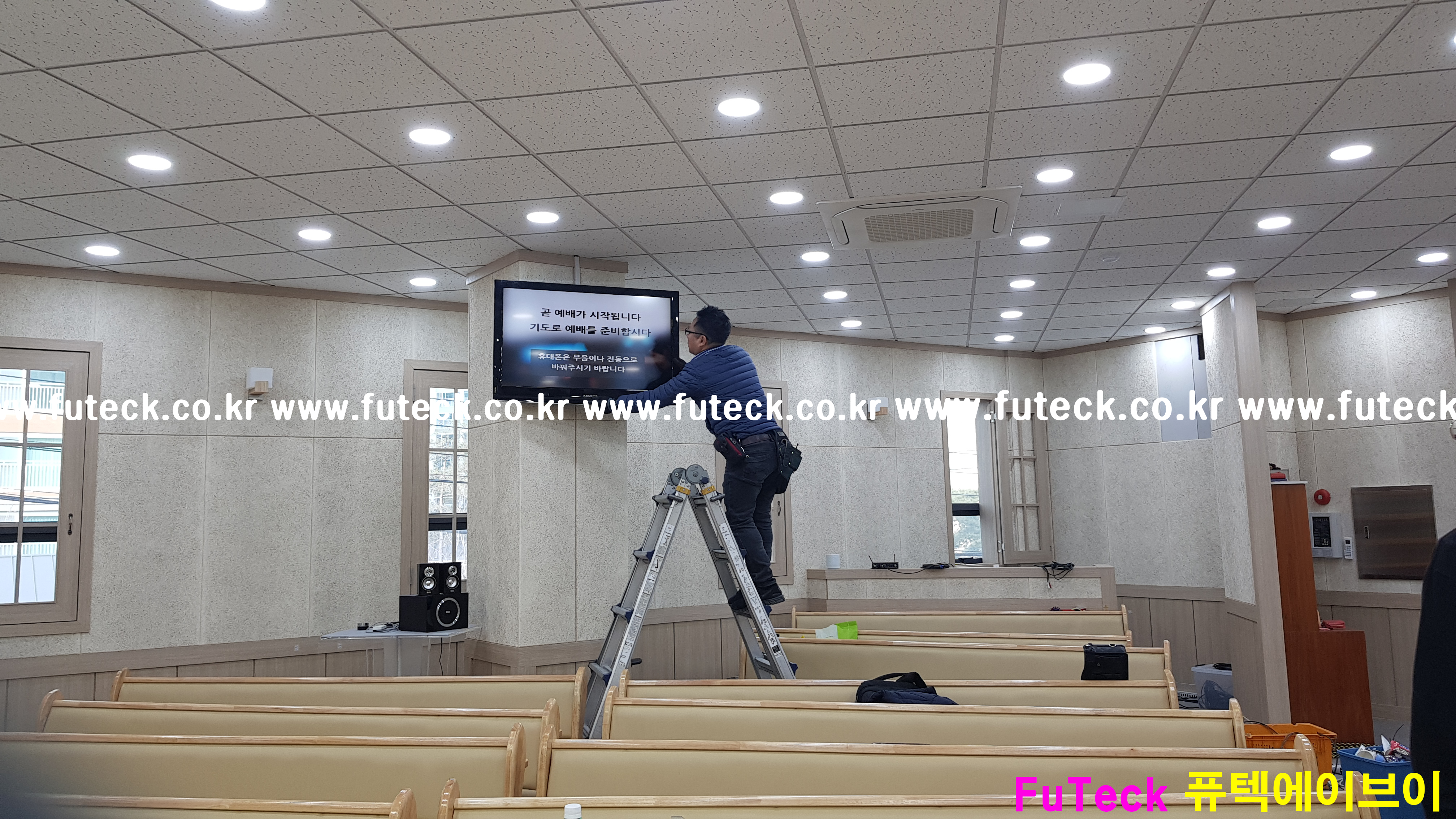 대구 은혜로 교회로 AV 이전설치 하러 왔습니다. 상가 건물 안에 있는 교회입니다. (교회외관) (교회 내부) (모니터 다는중) (모니터 단 후) (스피커도 달고) (모니터 또 달고) (음향기기도 설치하고) (시공 끝나고 정면 샷)